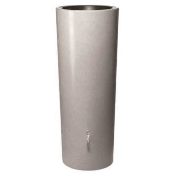 Deze Garantia Regenton met Plantenbak Kunststof Zilver met accessoires 350 Liter is een multifunctionele regenton die een regenton combineert met een plantenbak. Zo is deze regenton een decoratief onderdeel van je tuin zonder dat deze in het oog springt. De ton heeft een aftapkraan die je ook op een tuinslang kunt aansluiten en heeft door zijn hoogte geen extra regentonstandaard nodig om met een emmer water uit het kraantje te halen. De zilverkleurige regenton heeft een diameter van 62 centimeter, een hoogte van 150 centimeter en een inhoud van 350 liter. Het materiaal van de waterton is vrijwel onverwoestbaar. Vorst, regen en dergelijke weersomstandigheden hebben geen vat op deze regenton, wel dien je de regenton leeg te maken bij vriestemperaturen. Daarnaast bestaat de ton voor 75% uit gerecycleerde plastic en krijg je 1 jaar fabrieksgarantie.