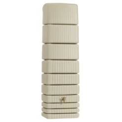 Deze super compacte Muurregenton Slim Zand heeft een inhoud van maar liefst 650 liter. Door zijn compacte afmeting is de muurregenton uitermate geschikt voor kleinere tuinen of plaatsing naast een looppad. Dankzij zijn hoge rechthoekige vorm is deze muur regenton van dan ook een ideaal product wilt u veel water opslaan op maar een kleine vloeroppervlakte en kan je aardig wat planten goedkoop water geven. De ton heeft een kindveilige deksel en een aftapkraan. De zandkleurig, beige regenton is speciaal geschikt voor de wand en heeft een breedte van 79 centimeter, een diepte van 52 centimeter, een hoogte van 210 centimeter en een inhoud van 650 liter. Het materiaal van de waterton is vrijwel onverwoestbaar. Vorst, regen en dergelijke weersomstandigheden hebben geen vat op deze regenton, wel dien je de regenton leeg te maken bij vorstgevaar. Daarnaast bestaat de ton voor 75% uit gerecycled plastic en beschikt over 1 jaar fabrieksgarantie. Dankzij de aftapkraan die op een ideale hoogte bevestigd is, is er voor het vullen van een emmer of gieter geen voet nodig. Voor het aftappen van het regenwater zet je namelijk gemakkelijk een emmer of gieter onder de aftapkraan.