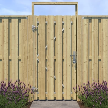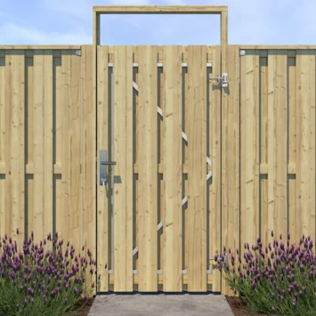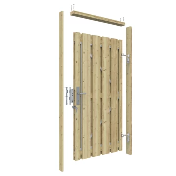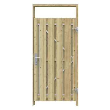 De tuindeur is gemaakt de houtsoort grenen. Grenen is een naaldhoutsoort die van nature zachter en vetter is dan vuren. Deze harsrijke soort is één van de meest gebruikte houtsoorten in Europa. Om de levensduur te verlengen wordt deze houtsoort vacuümdruk geïmpregneerd met Tanalith E. Deze methode zorgt ervoor dat de levensduur verlengd wordt tot 5-10 jaar en dat het hout resistent wordt tegen (oppervlakte) schimmels.