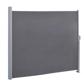 Met het oprolbare antraciet windscherm is het mogelijk om uit de wind optimaal te kunnen genieten van de zon. Daarnaast zorgt het windscherm voor een stukje extra privacy.Dit windscherm heeft een hoogte van 160cm en is eenvoudig te monteren op elke gewenste afstand, tot maximaal 300cm.De complete set bestaat uit een aluminium cassette incl. een antraciet UV bestendig, geïmpregneerd en waterafstotend polyester doek. Tevens wordt een vloerbevestiging (om de pilaar op een betegeld terras te bevestigen) en muurbevestigingsset meegeleverd.